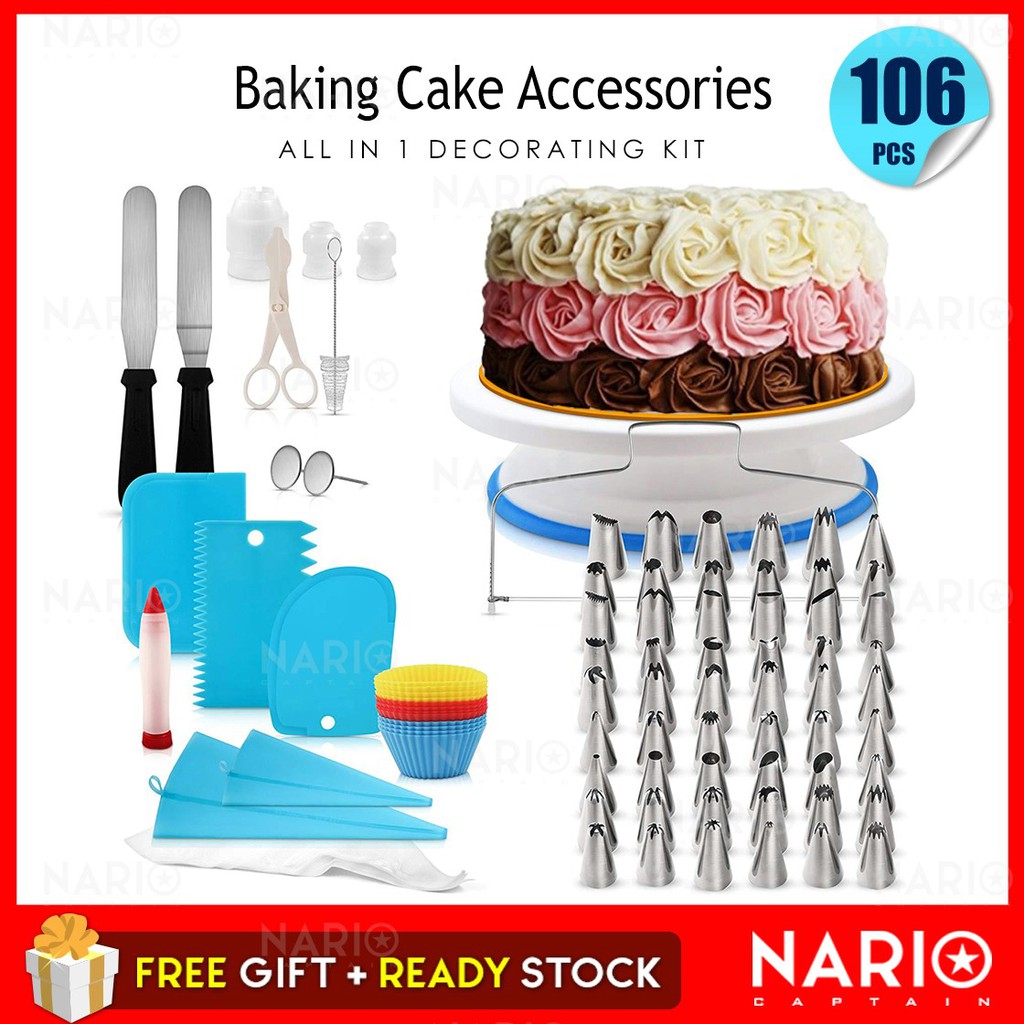 Nario Clear Stock 106pcs Peralatan Aksesori Buat Kek Alat Pastri Cake Turntable Baking Kit Cake Tools Set Shopee Malaysia